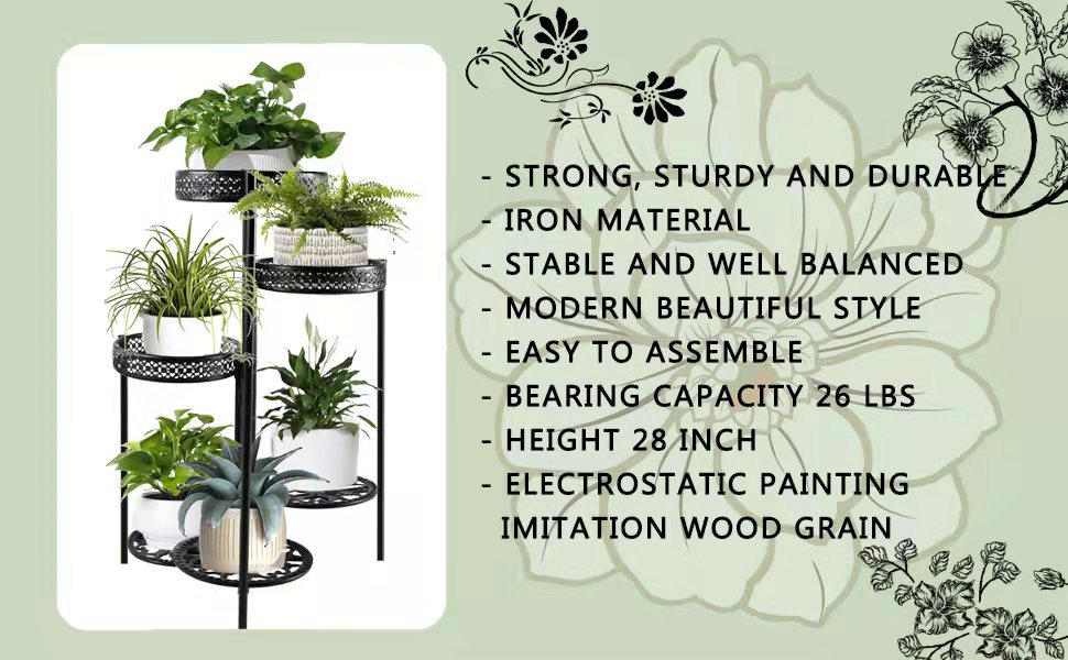 Amazon Com Plant Stand 6 Tier Indoor Outdoor Multiple Flower Pot Display Holder Metal Wrought Iron Planter Organizer Shelf Corner Potted Storage Rack For Garden Patio Lawn Balcony Black Patio Lawn